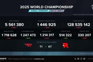 据外媒统计,S15总决赛Bo5的海外直播平台巅峰收视为556万,相比去年S14决赛热度有所下滑。