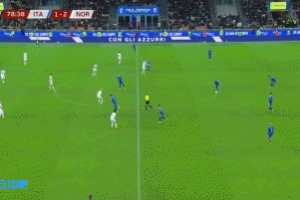 体育资讯11月17日讯 世预赛意大利vs挪威第79分钟,巴斯托尼出球被鲍勃拦截,挪威迅速组织进攻。点球点附近哈兰德轻松包抄得手达成双响,意大利1-3落后!