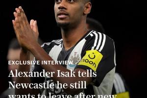 体育资讯08月26日讯 电讯报独家消息,在与纽卡老板面谈后,伊萨克重申自己希望离队,希望加盟利物浦。